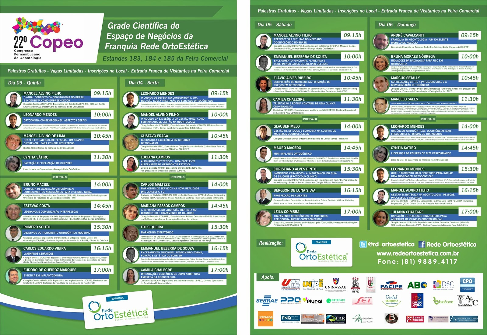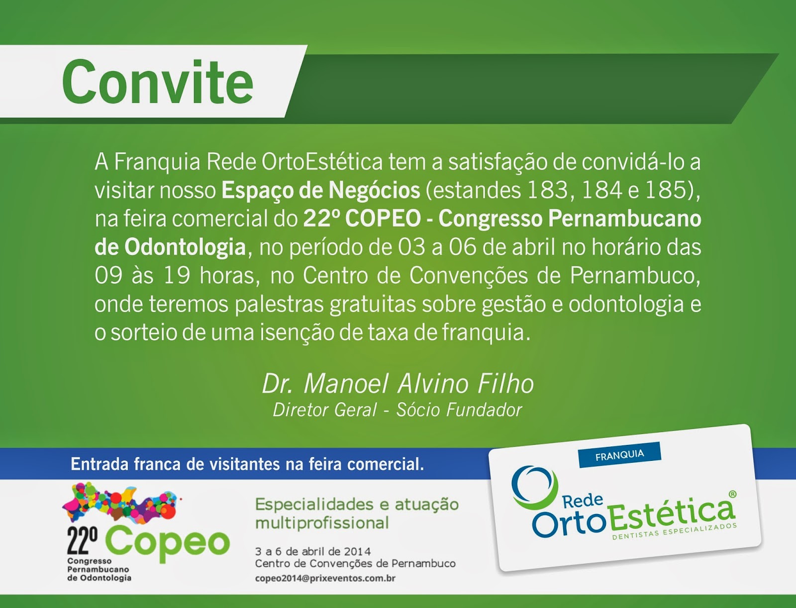Prof. Ito Siqueira e Prof. Estevão Costa participam do 22º Copeo – Congresso Pernambucano de Odontologia, de 3 a 6 de abril de 2014, a convite da Rede OrtoEstética